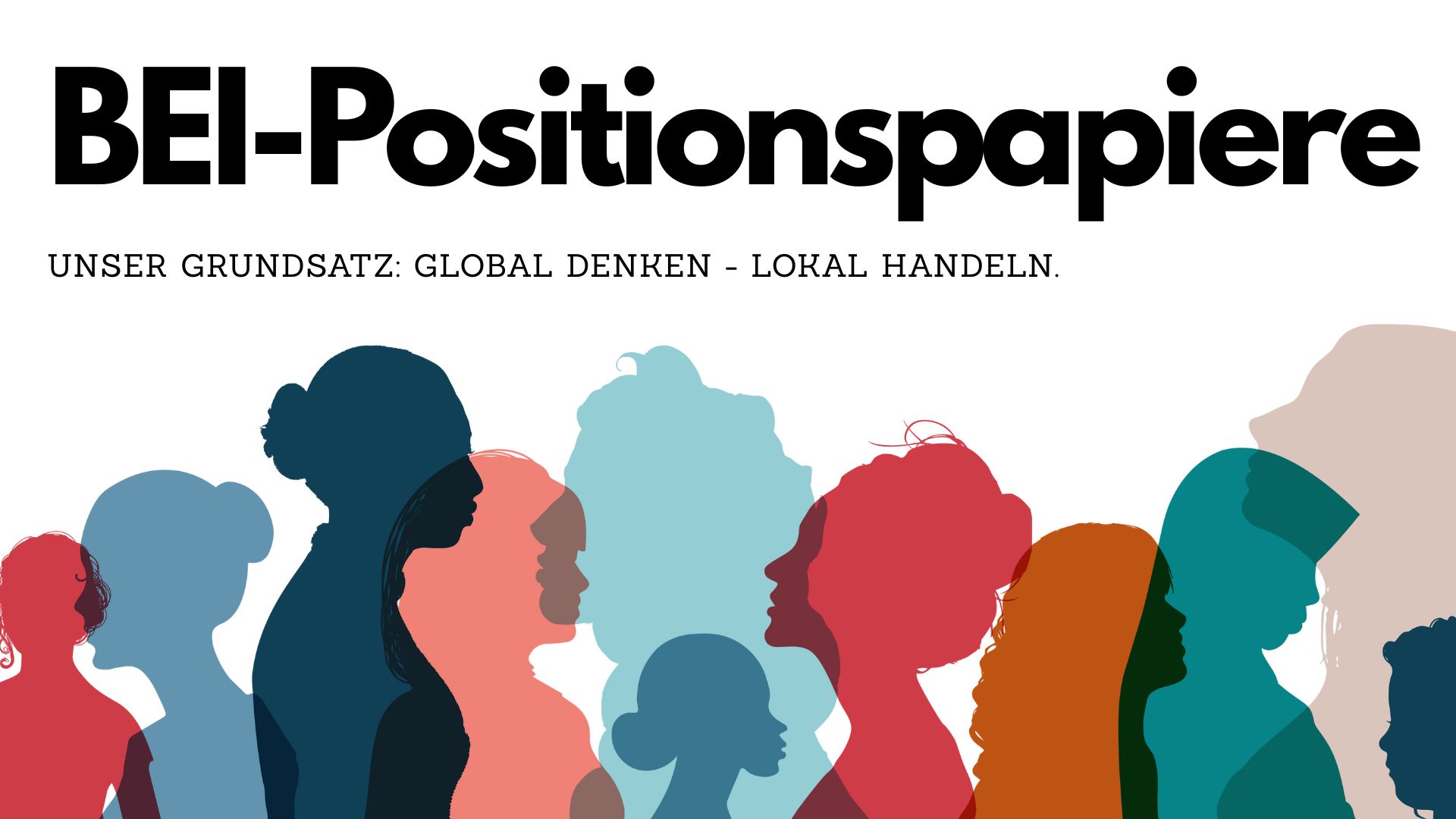 In bildungspolitischen Diskursen sowie bei der Umsetzung von Projekten und dem Setzen von Impulsen vertreten wir als BEI folgende Positionen im Globalen Lernen. Diese Ausführung ist als ein Schwerpunkt unseres Handelns zu verstehen. Wir stehen für eine transformative Haltung im Umgang mit diesen und potentiellen neue Schwerpunkten.